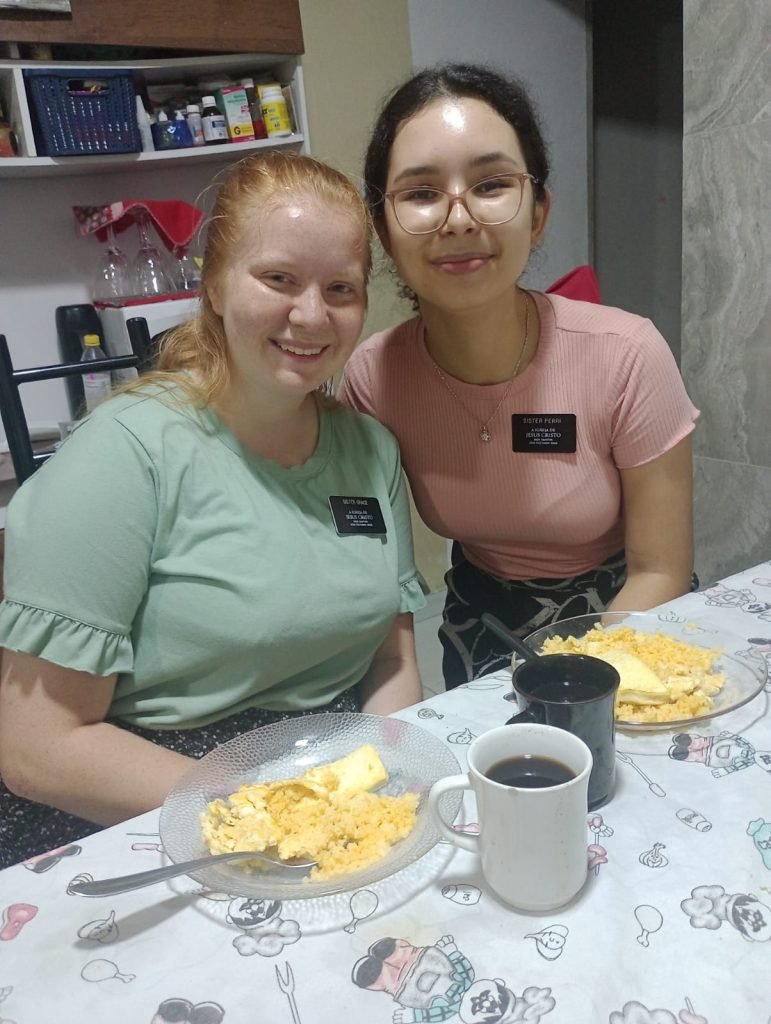 We had so many strange events come up that we had to replan every single day this week at least 3 times and even then what actually happened never was what we had prepared for. More than a few times we would leave teaching appointments that were only supposed to be 15 minutes which ended up being 50 minutes. On Friday our phones refused to function and we ended up spending a lot of extra time in the house trying to contact our references. Many times, we’d plan to bring a member with us to a lesson and they’d have to cancel moments before. Once Sister Perri tried making breakfast while I washed the dishes. My hands were covered in soap and hers in eggs right as they shut off our water (we don’t know why, it just happens sometimes.)