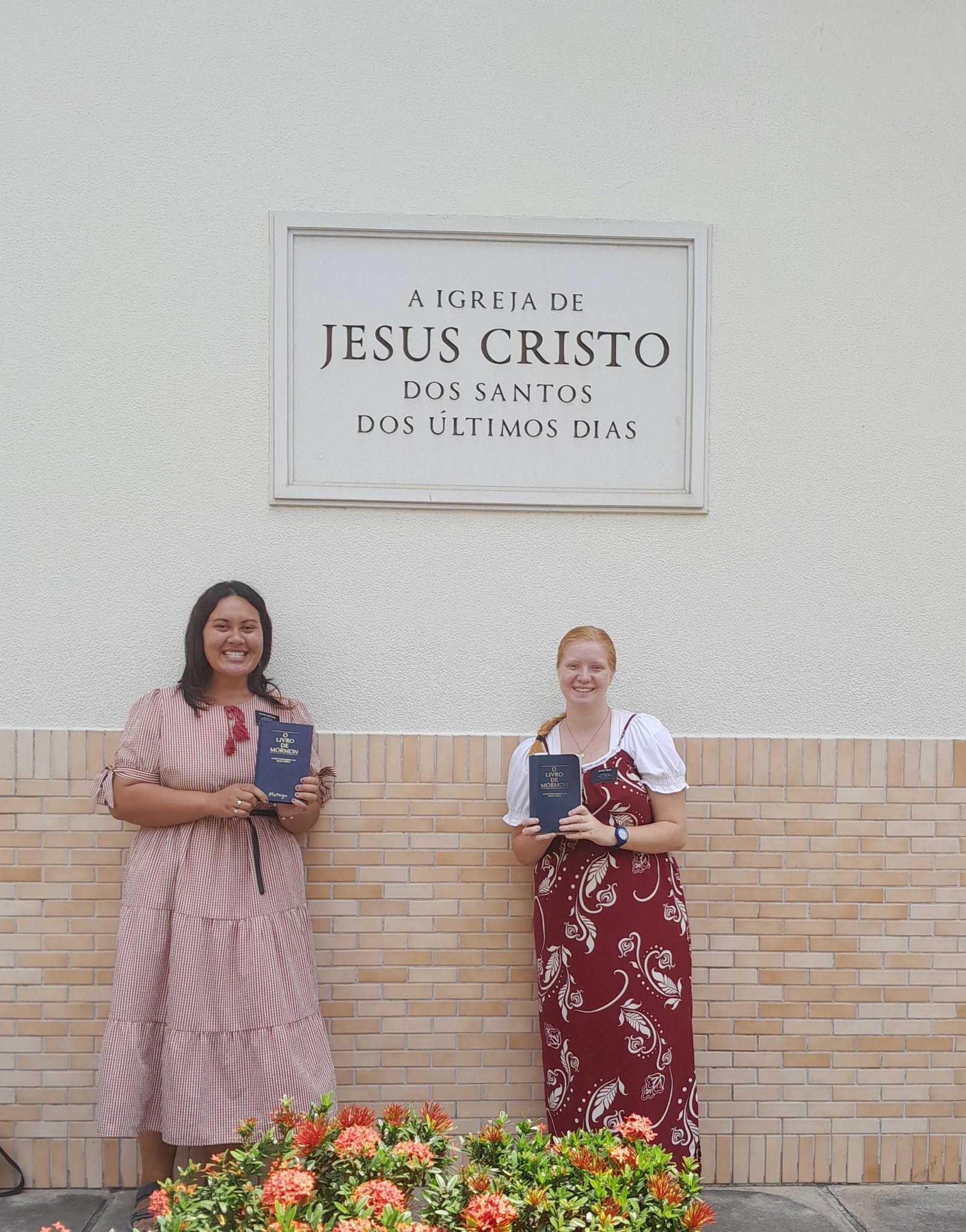 Alyssa and Sister Motuga by the sign outside the Candeias chapel