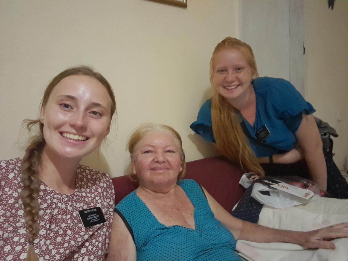 Alyssa and Sister Fuller with a member