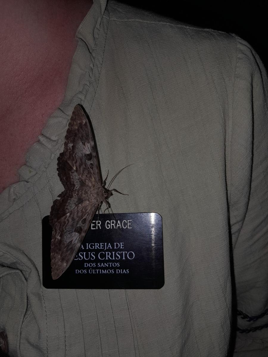 Alyssa with a moth friend on her name tag