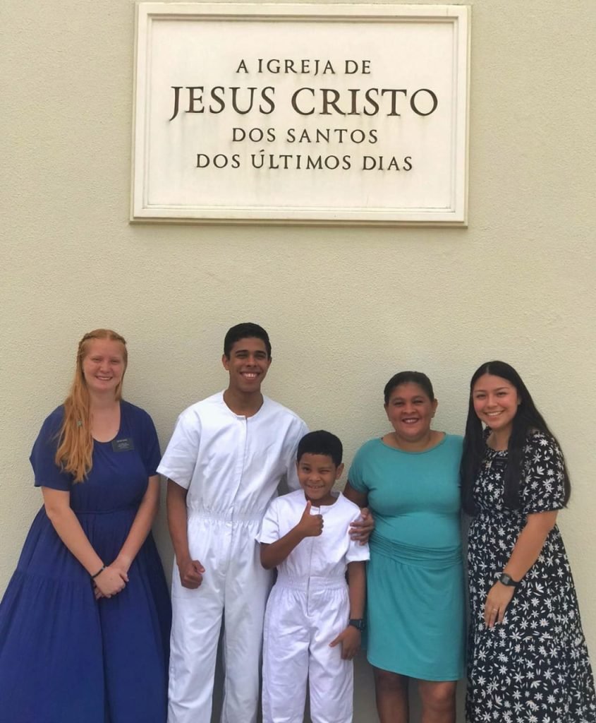 Alyssa and Sister Villatoro with Samual, his brother, and his mom before his baptism